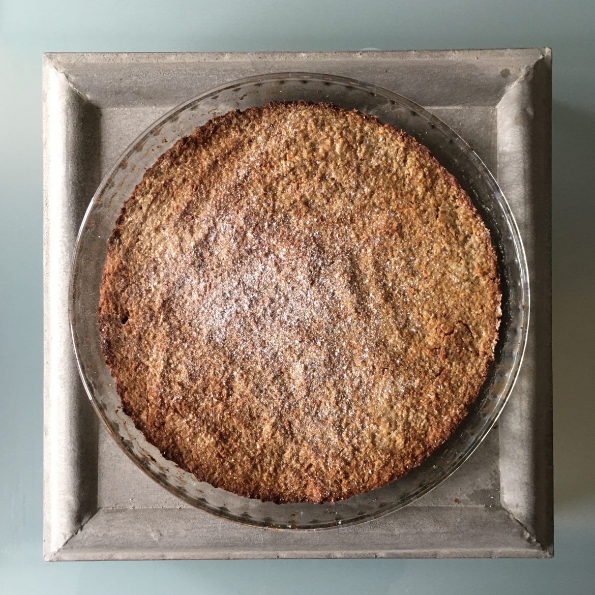 Abkühlen lassen und mit etwas Puderzucker bestäuben. Alternativ kurz vor Ende der Backzeit mit etwas Zucker bestreuen, unter dem Grill leicht karamellisieren lassen und warm servieren.