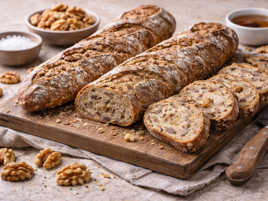 - Nuss-Integration: Mit ca. 30–50 g Walnüssen pro Baguette deckst du bei 2–3 Scheiben bereits einen Großteil deiner täglichen Nuss-Ration voll ab (empfohlen sind 25–50 g).